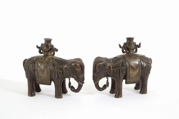 Pair of bronze sculptures "ELEPHANTS"
