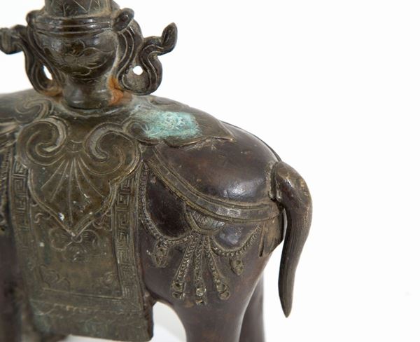 Pair of sculptures depicting "ELEPHANTS WITH VASES ON THE BACK". China. Nineteenth century.