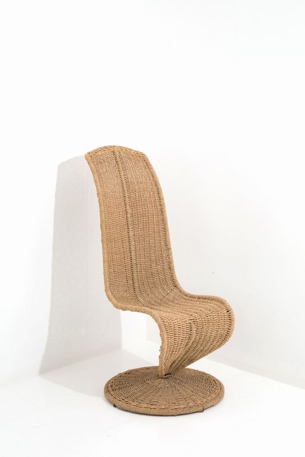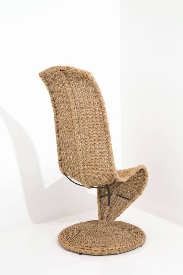 'S' chair in metal, rope and wicker. STUDIO MOST production. 70's.