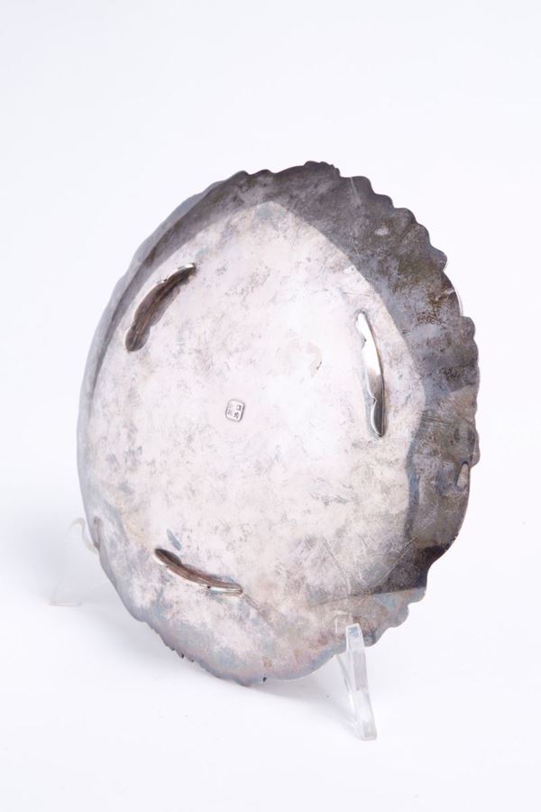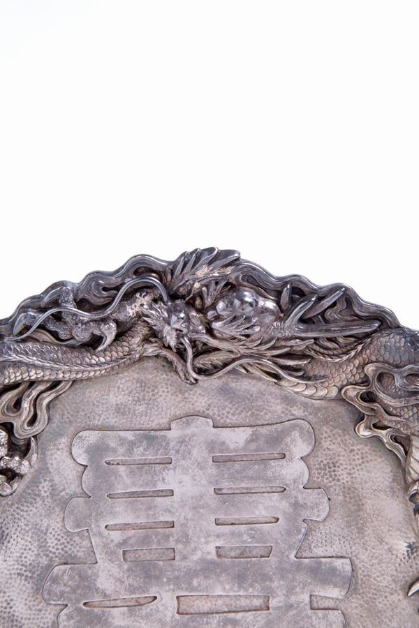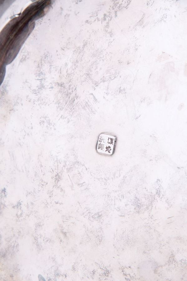 Parade plate in silver cast with lost wax and chiseled, gr. 412. Marked under the base. China. 19th century.