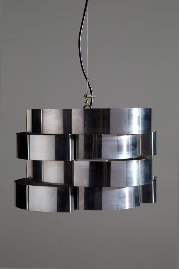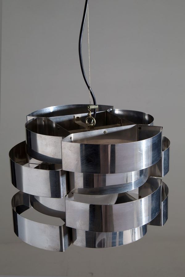 Space Age chandelier in chromed metal. Demos Mobilia production. 1960s.