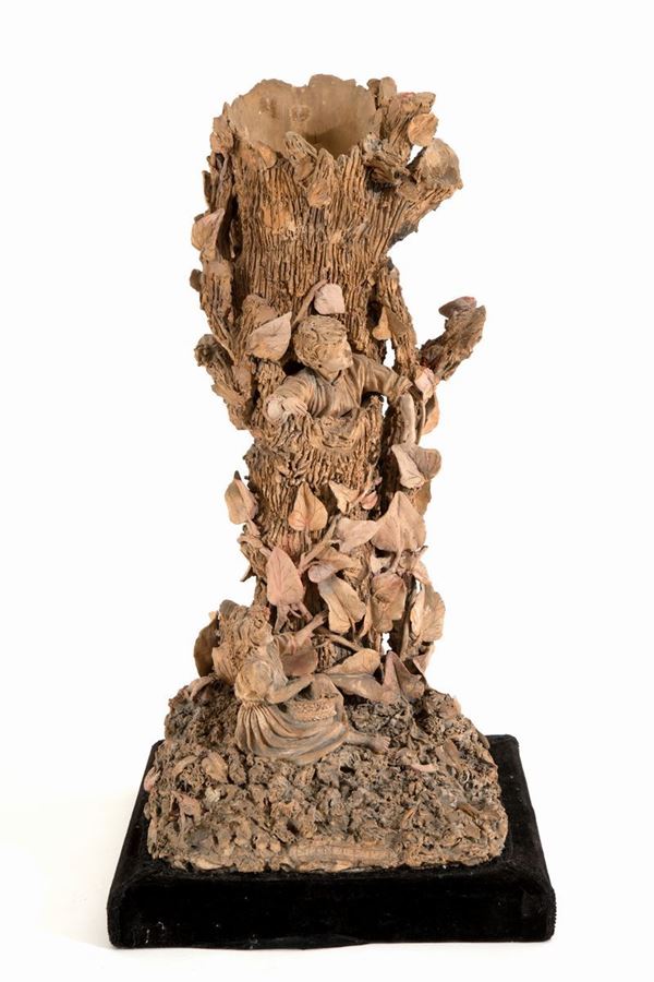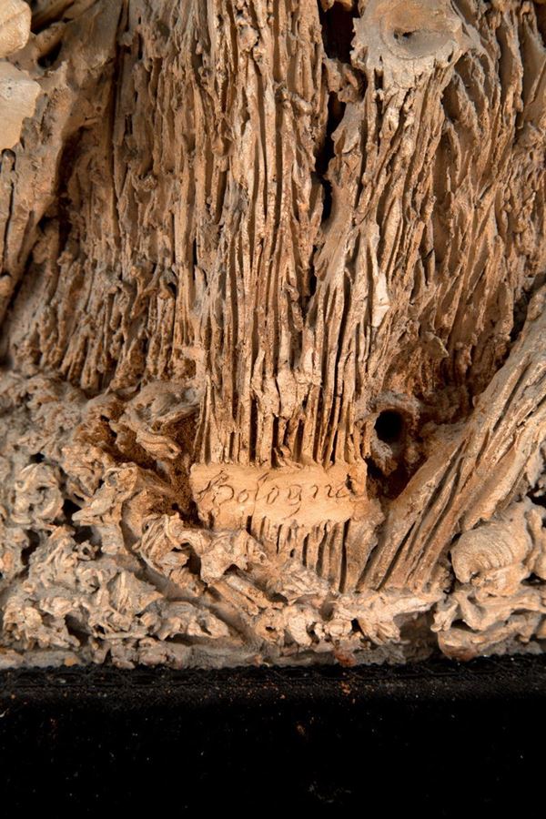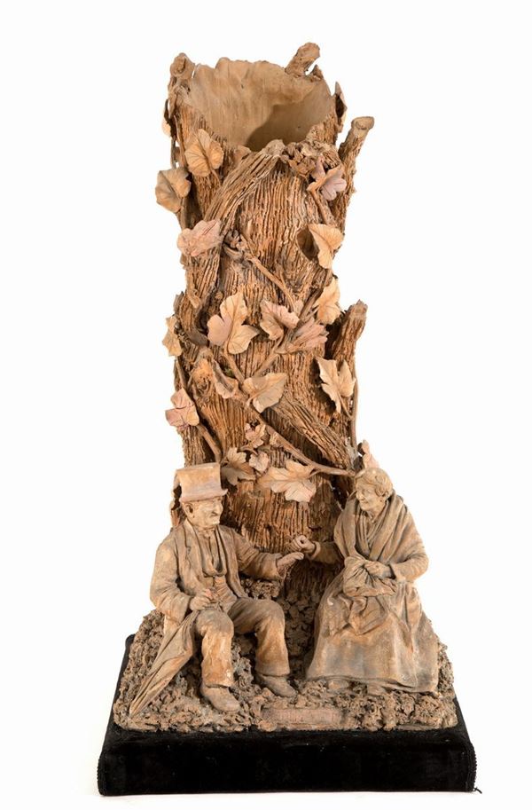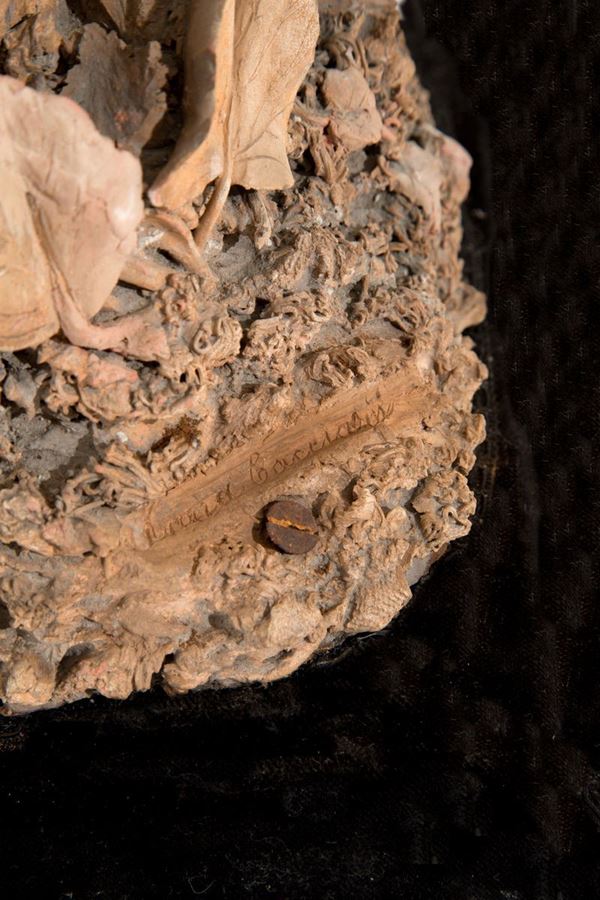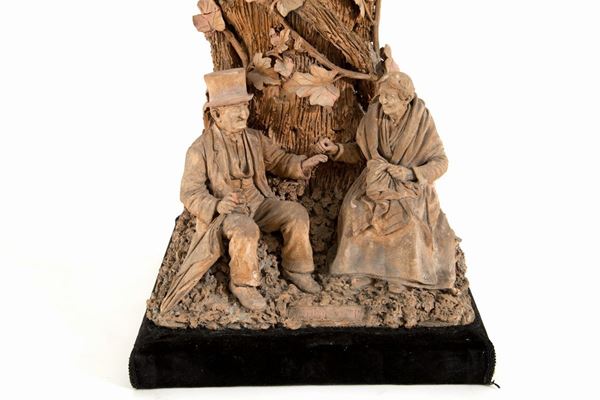 Two terracotta sculptures entitled "FIRST AGE" and "LAST AGE". Unidentified signature on the back. Nineteenth century. Defects and shortcomings.