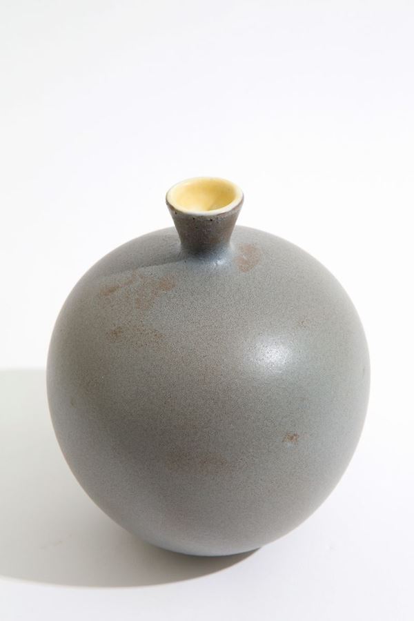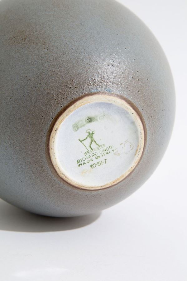 Spherical vase in gray enamelled earthenware. Marked RICHARD GINORI on the bottom. 1950s.