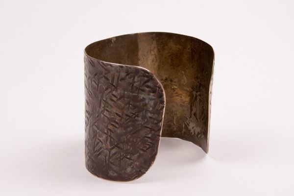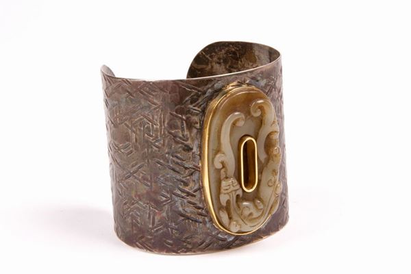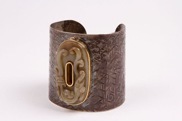 Bracelet in silver, approximately 13 gr. ca. yellow gold and Chinese gray jade depicting "LORD OF THE RAIN".