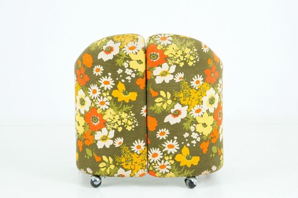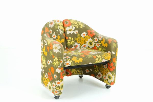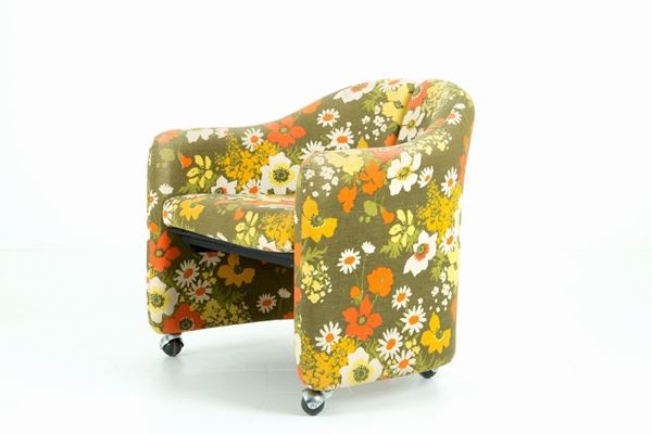 Four PS142 armchairs with floral motif upholstery. TECNO production. 60's.
