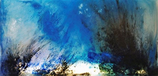 Mixed technique with resins on perpex entitled "SEABED". Signed.