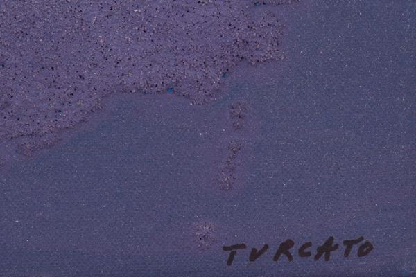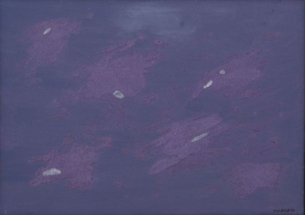 Oil and sand painting on canvas depicting "ARCHIPELAGO". Signed lower right. With authentication and artist's signature on the back. In frame. Small restoration. Ex lot 79 in the Modern and Contemporary Art auction held in Milan on 20 May 1996 at Christie's.