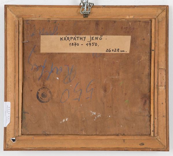 Oil painting on tablet depicting "LAKE GLIMPSE". Signed lower left. In frame.