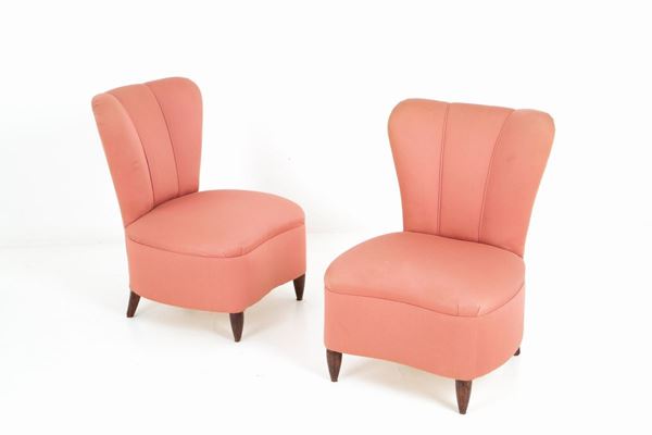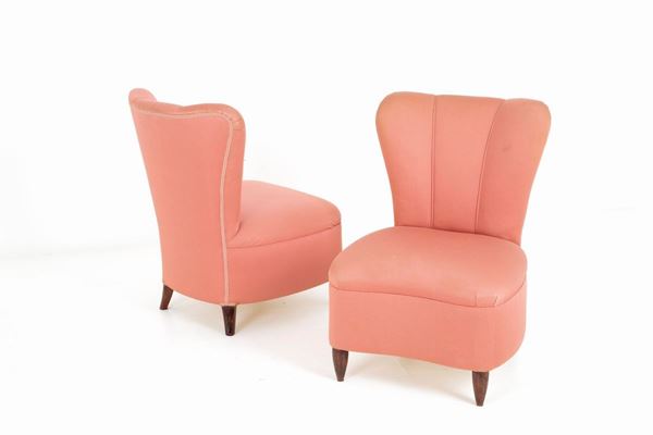 Pair of pink armchairs. 50s. Good condition, original fabric with signs of wear.
