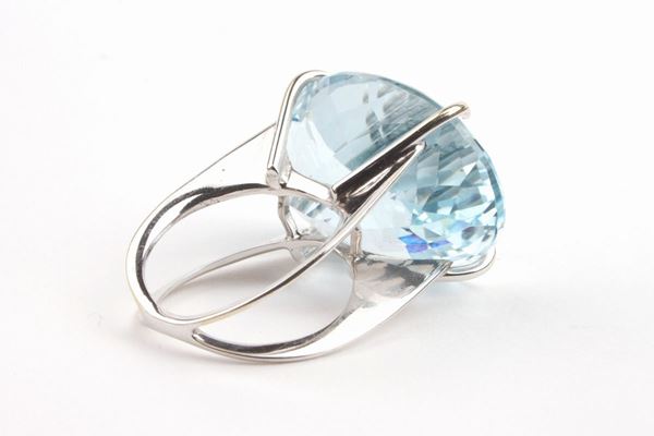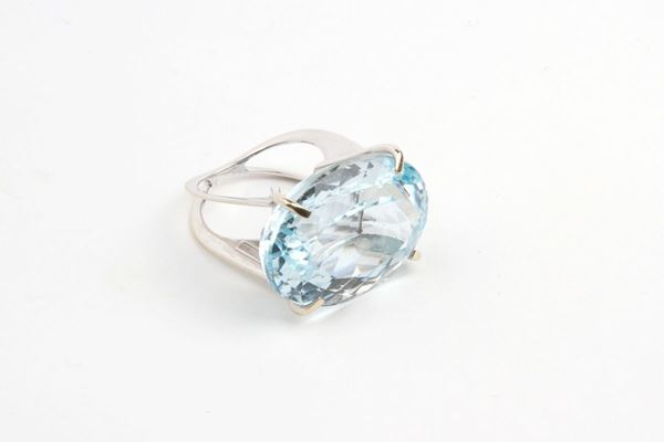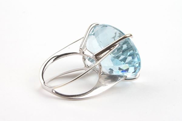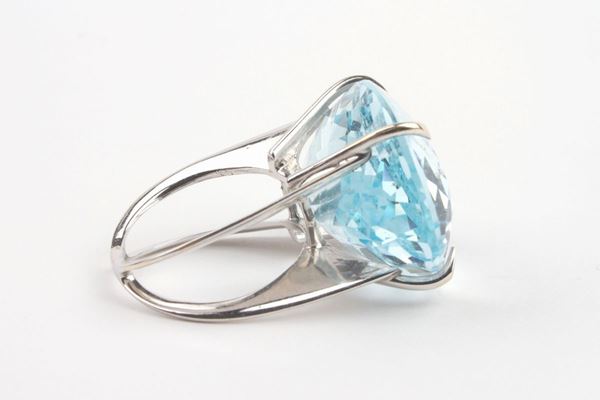 Venezia ring in 18k white gold with blue topaz, gr. 10 overall.