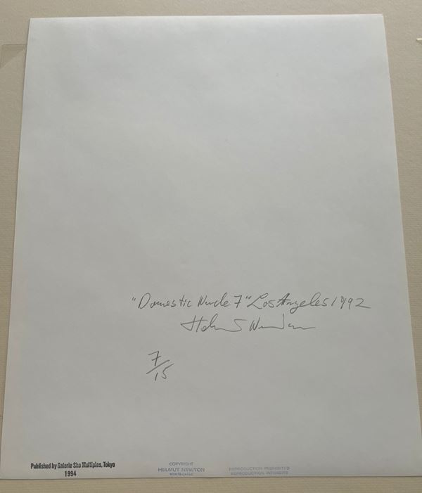 Gelatin-silver print from the series "DOMESTIC NUDE", HOLLIWOOD, 1992". Signature, title, date and copy number "7/15" in pencil and artist's stamp on the reverse.