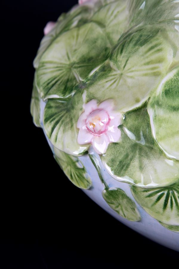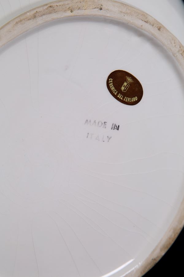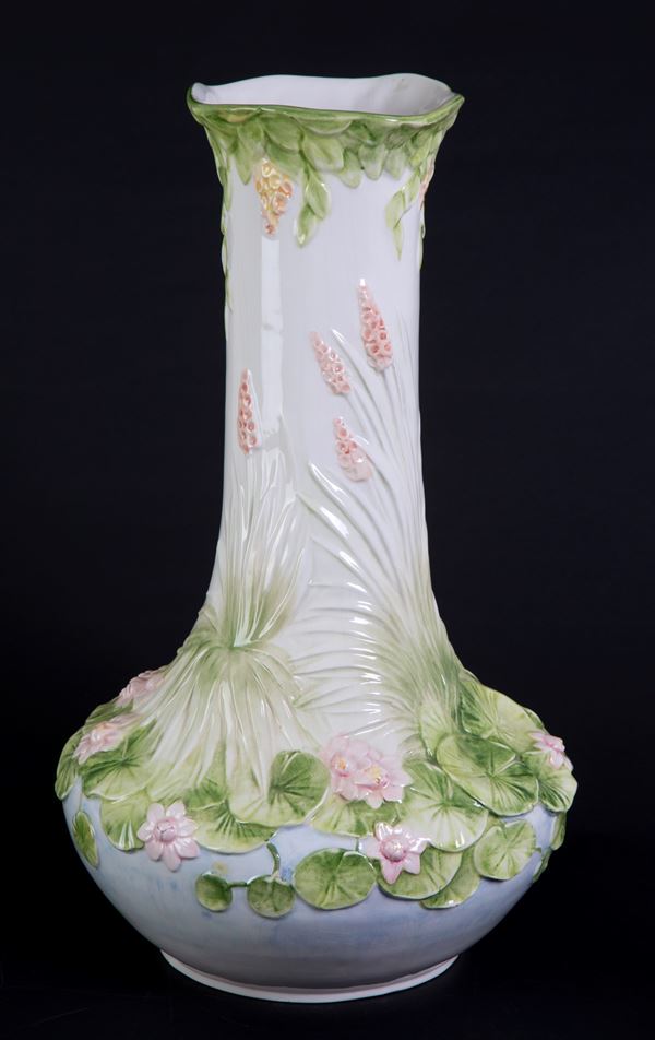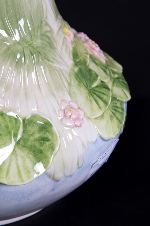 Ceramic vase painted with floral Liberty motif. With CERAMICHE DEL FERLARO manufacturer's label on the bottom.