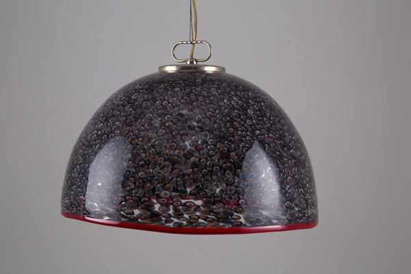 Murrina glass and brass chandelier. LEUCOS production. 70's. Slight signs of wear on the chrome.