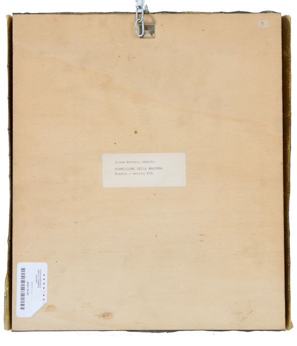 Icon in bronze and enamel depicting "DORMITIO VIRGINIS". 19th century.