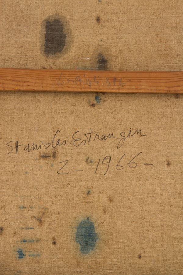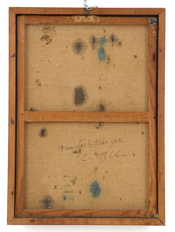 Mixed technique on cardboard on canvas depicting "INFORMAL SUBJECT". Signed STANISLAS ESTRANGIN and dated 1966 on the reverse.
