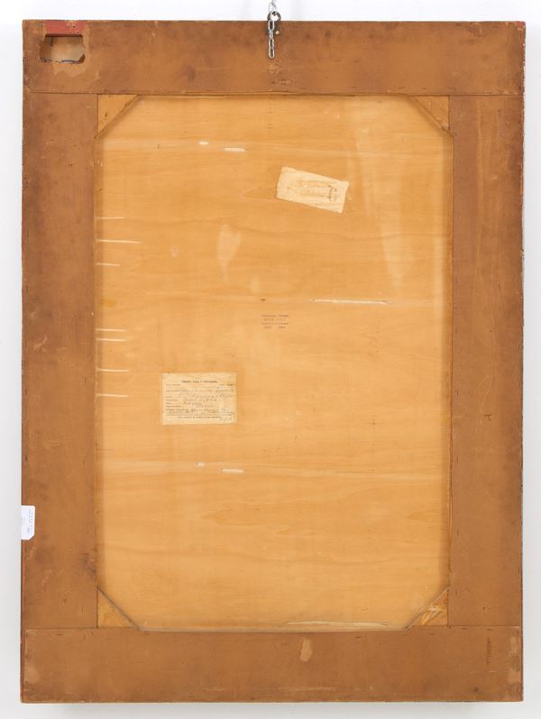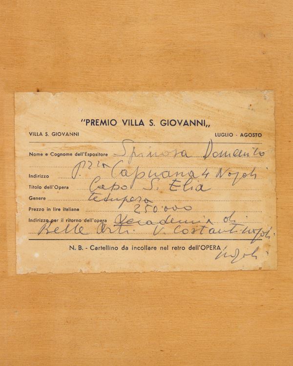 Tempera painting on wood entitled "CAPO S. ELIA". Signed lower right. With stamp of the Nino Calì private collection and scroll of the Villa San Giovanni 1963 award on the back. In frame.
