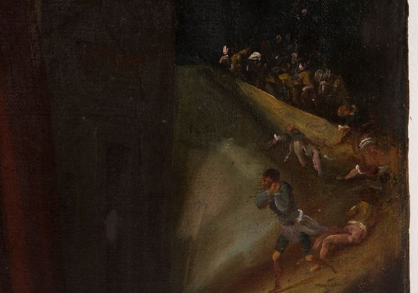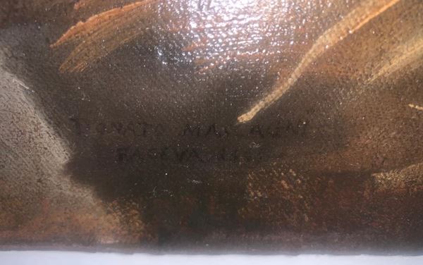 Oil painting on canvas depicting ''GIOBBE ON THE DUNGHILL". Signed and dated lower left. Already relined and relined.