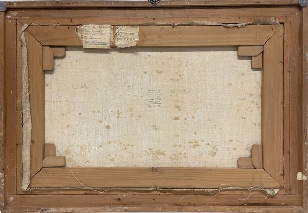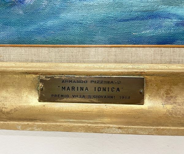 Oil painting on canvas entitled ''MARINA CALABRESE''. Signed and dated 1962 lower right. Nino Cali collection. With cartouche of the Villa San Giovanni 1964 award on the back. In frame.