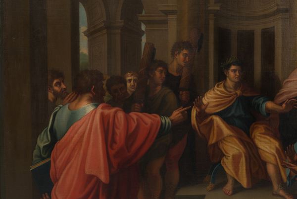 Oil painting on canvas depicting ''THE BLINDING OF ELYMAS''. From Raphael. Early 19th century. In frame.