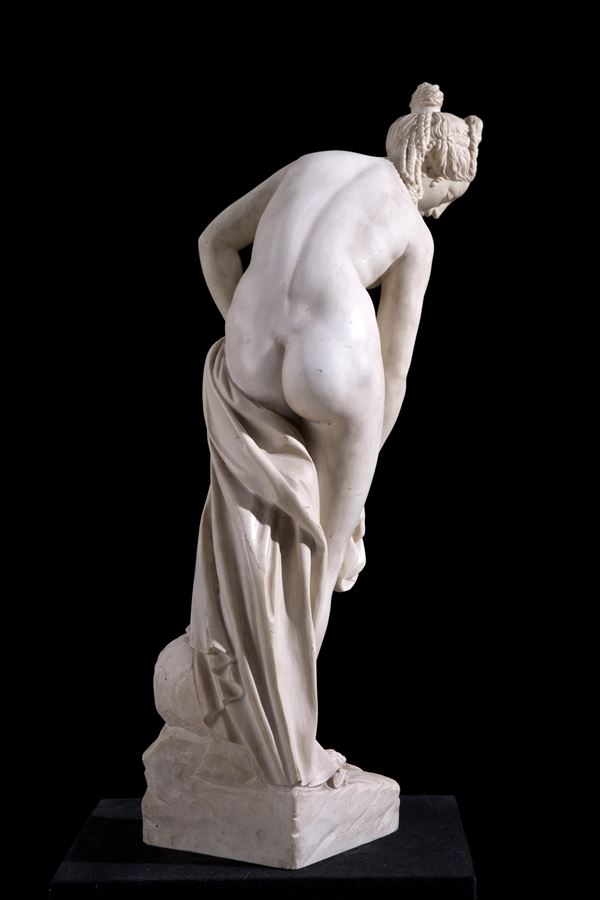 Marble paste sculpture depicting "VENUS IN THE BATH". Mid 19th century.