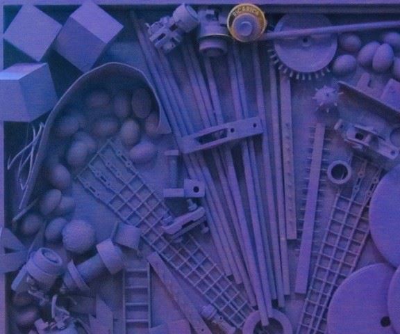 Sculpture painting entitled "UPCYCLING GLICINE" made with dynamic diagonals that create a three-dimensional effect.