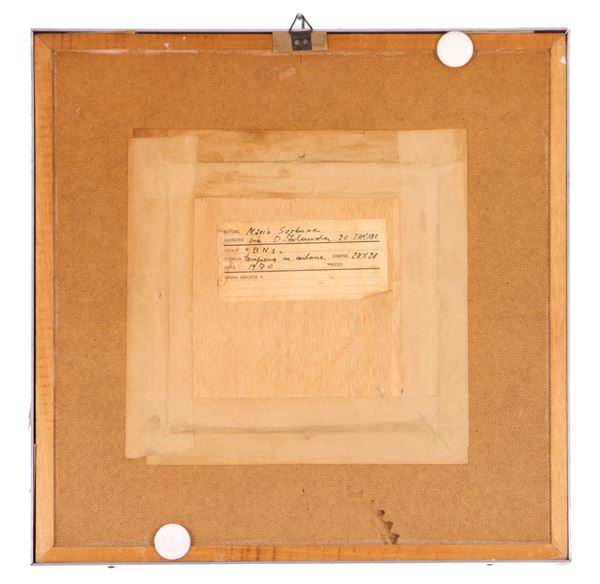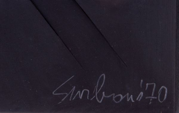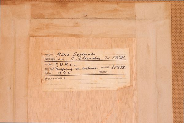 Tempera painting on cardboard titled "BN1". Signed and dated '70 lower right. With cartouche on the back. In frame.