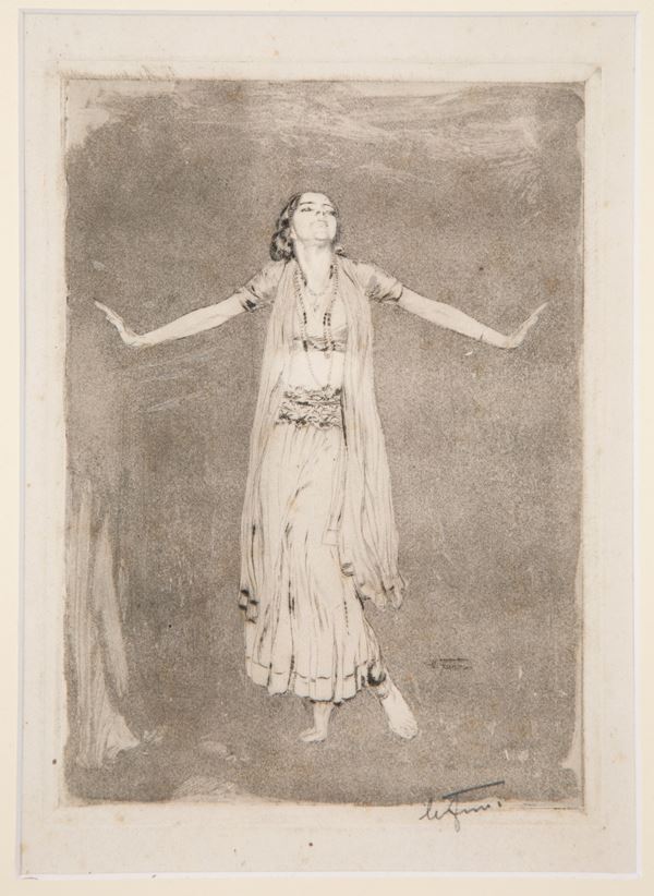 Engraving on paper depicting "THE INDIAN DANCER". Signed lower right. In a beautiful frame.