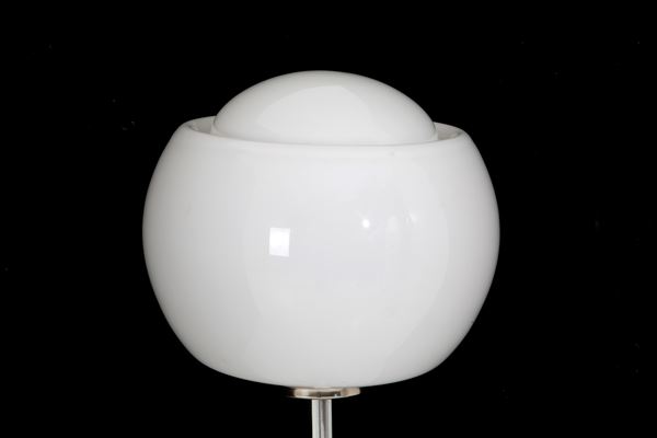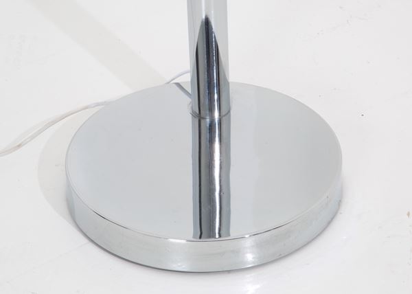 Floor lamp in chromed steel and opal glass. In the style of HARVEY GUZZINI. 60s.