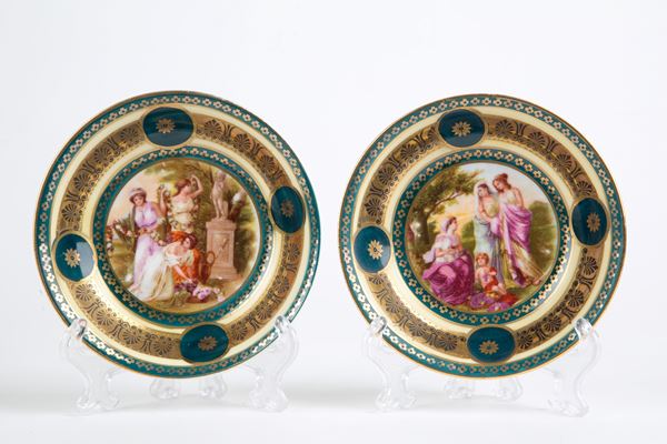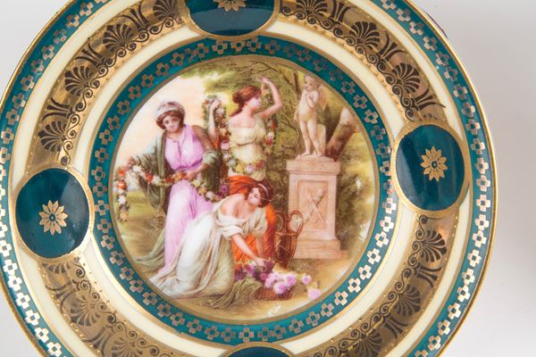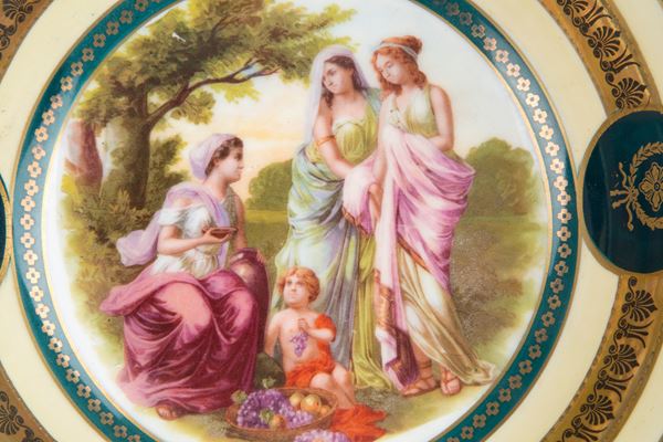 Fruit salad service consisting of twelve cups and a bowl in painted porcelain. KPM brand. Germany.