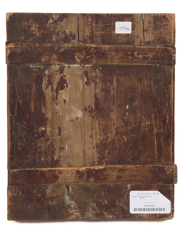 Icon depicting "CRUCIFISION WITH SAINTS". Russia. 18th century. Defects.