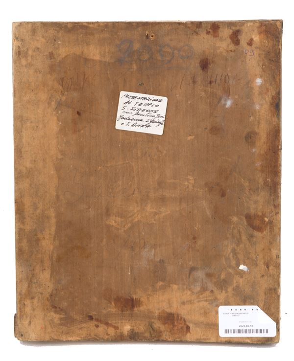 Icon depicting "PRESENTATION AT THE TEMPLE OF SAINT SIMEON WITH CHILD JESUS, MADONNA, SAINT JOSEPH AND SAINT ANNE". Russia. 19th century.