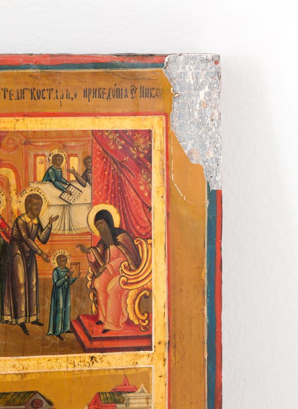 Gold background icon depicting "SAINT NICHOLAS". Russia. Early 19th century. Defects and shortcomings.