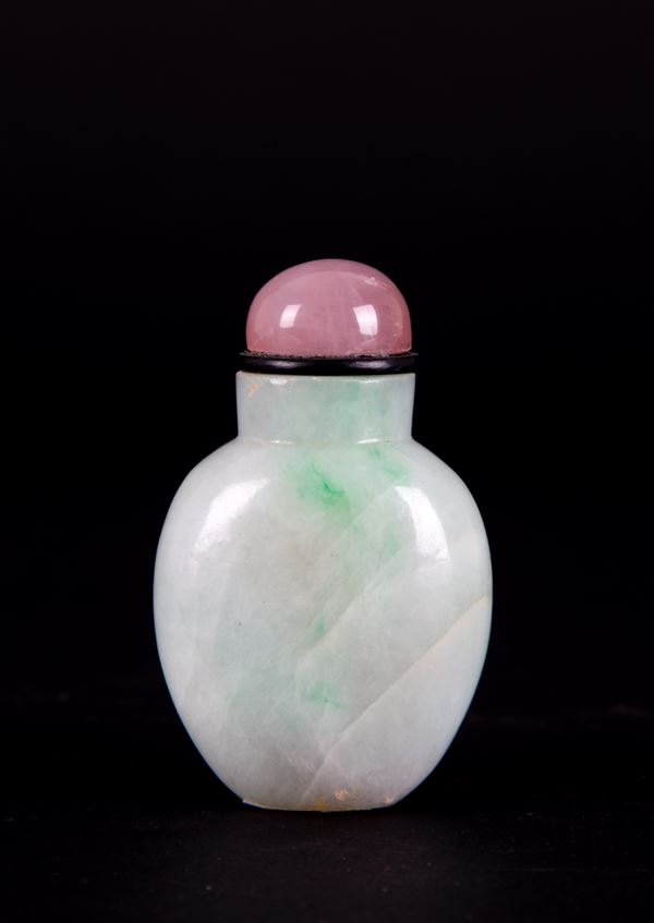 Jade snuff bottle with quartz cap. China.
