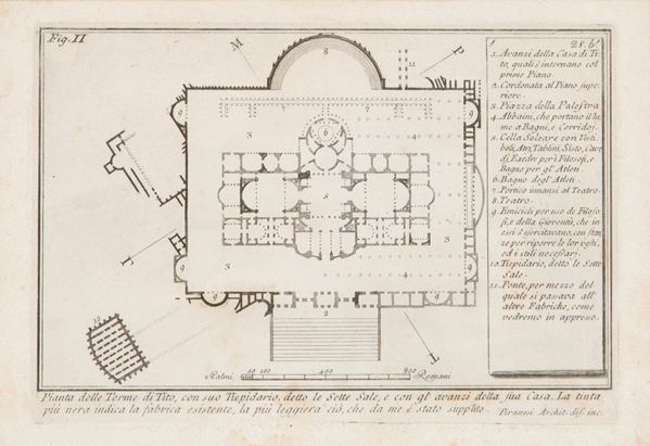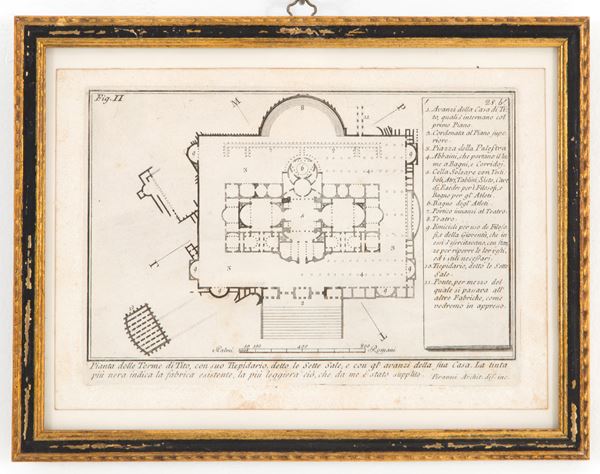 Pair of etchings on paper depicting "PLAN OF THE TERME DI TITO". In frame.