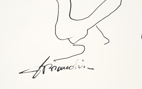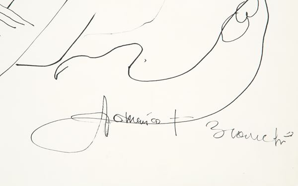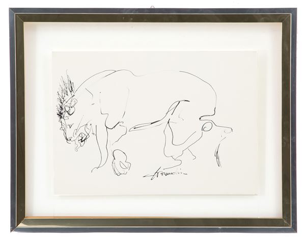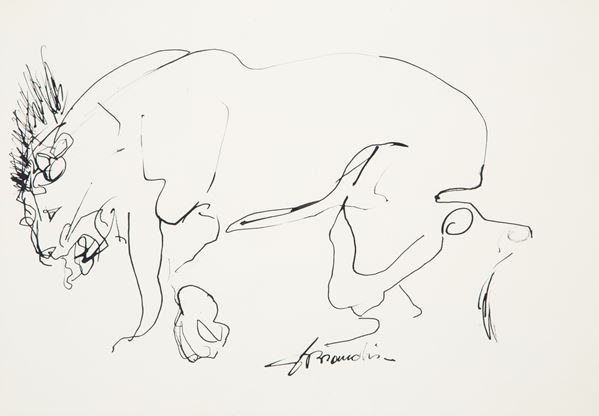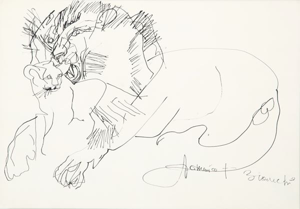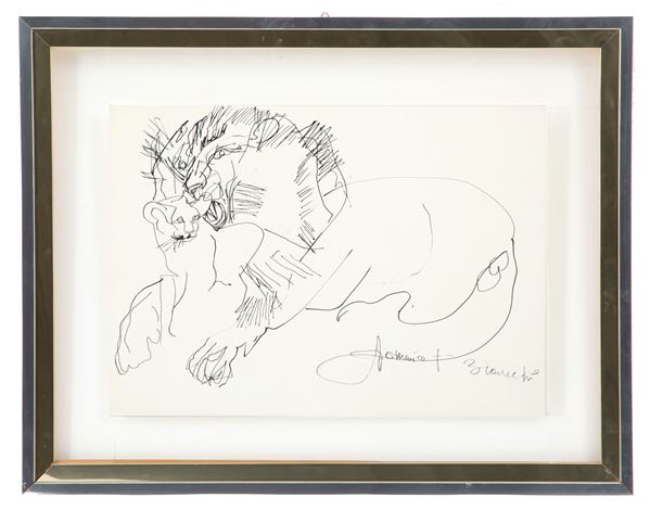 Pair of ink drawings on paper depicting "LIONS". Signed DOMENICO BIANCHI lower right and in the centre. In frame.