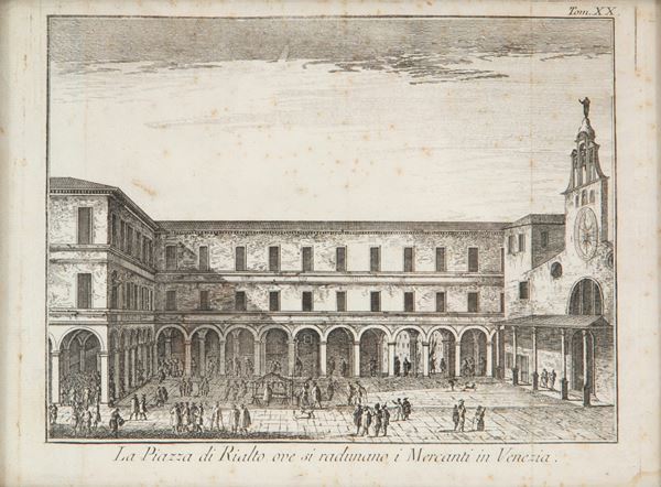 Pair of small etchings "PIAZZA E PONTE DI RIALTO"