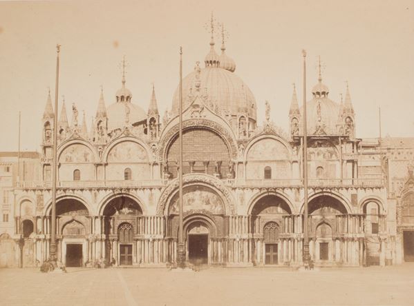 Albumin print on cardboard "SAINT MARK'S BASILICA". 1880. Stamp lower right. 27x35cm on cardboard 45x57.5cm.
