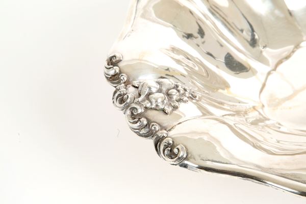 800 silver cake stand, gr. 280 approx. Marks on the margin. 20th century.