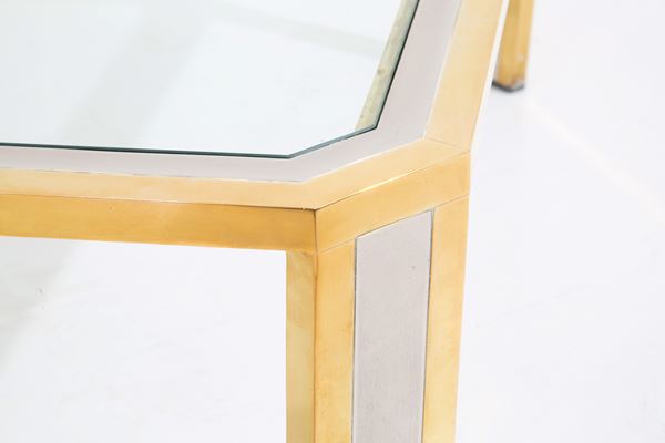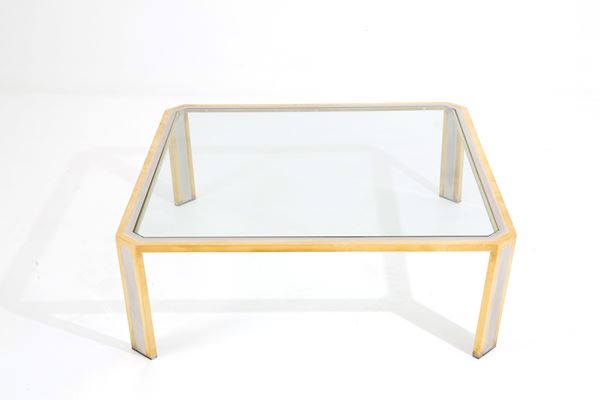 Square coffee table in brass, steel and glass. Italian manufacture. 70s.