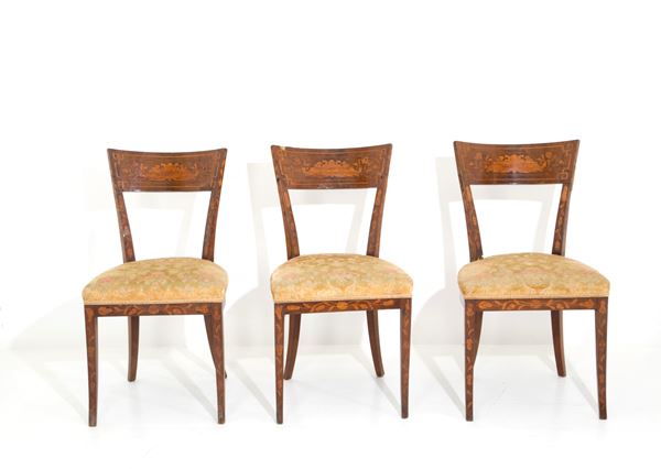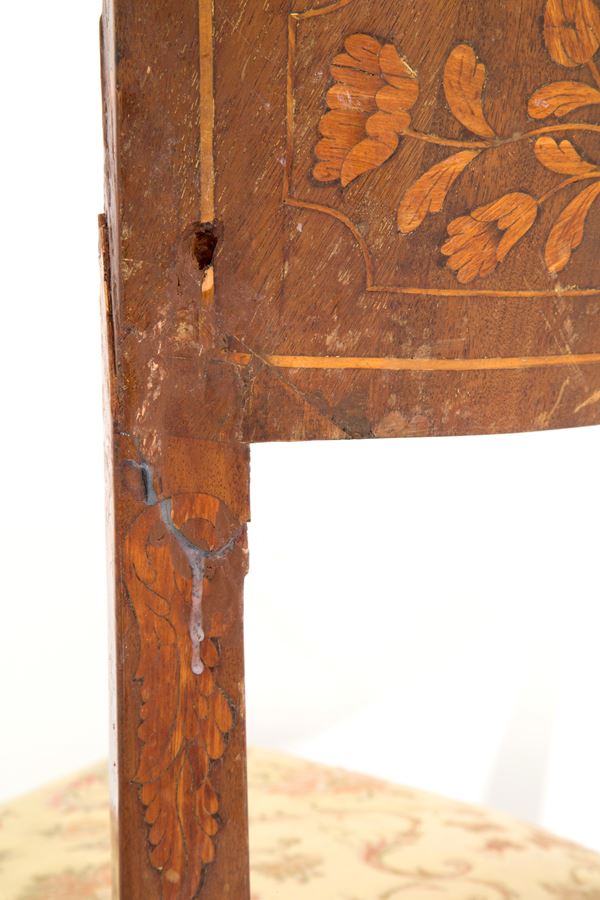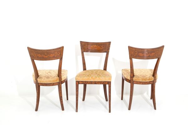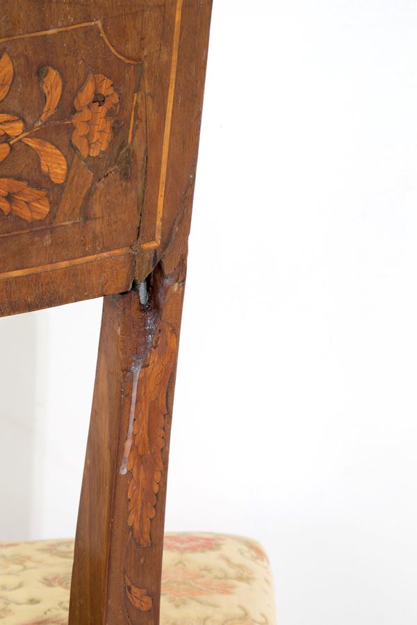 Three chairs inlaid with floral motifs. Holland. 19th century. Defects and shortcomings.
