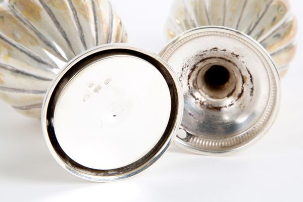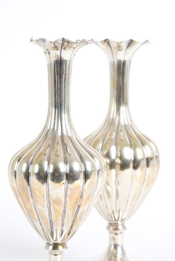 Two flower vases in 800 silver, gr. 395 approx. overall. One with silver stamp on the bottom. 20th century. Defects.