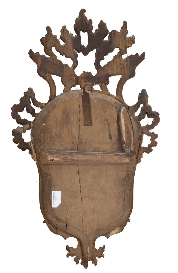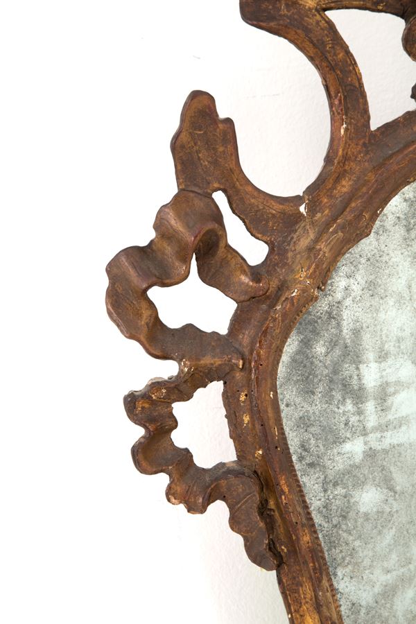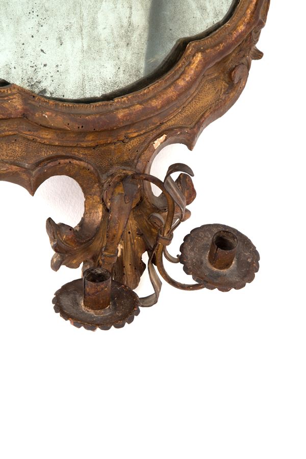 Wall lamp with mirror in carved and gilded wood. 18th century. Defects.