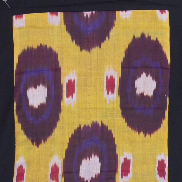 Fragment of Uzbekistan Ikat silk fabric. Central Asia. Around 1900. Perfect state of conservation, already lined.