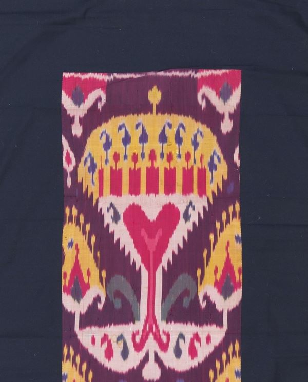 Fragment of Uzbekistan Ikat silk fabric. Central Asia. Second half of the 19th century. Perfect state of conservation, already lined.