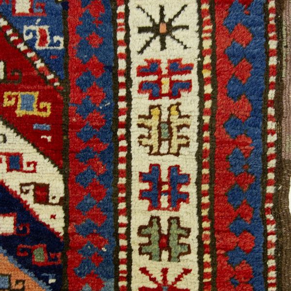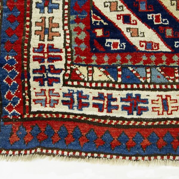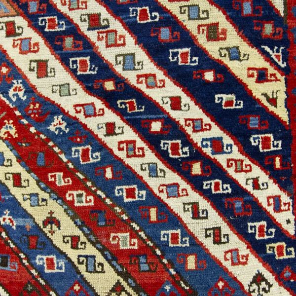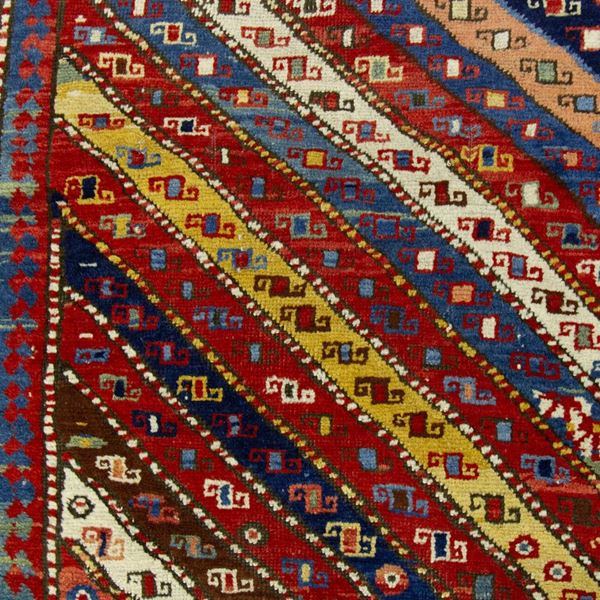 Ghendjè rug with diagonal band design. Caucasus. Second half of the 19th century. Excellent state of conservation.