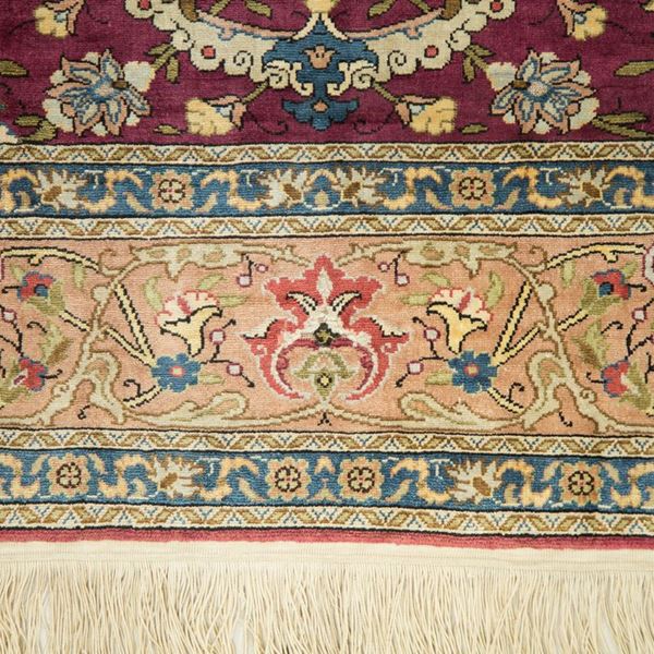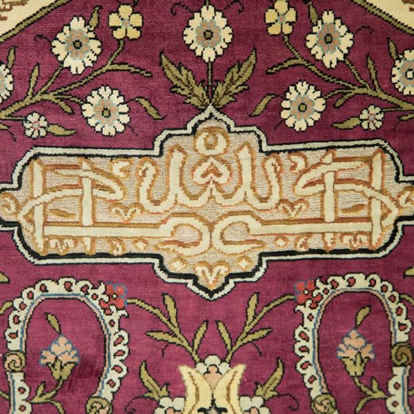 * Herekè carpet Kum Kapi design in silk and golden metallic threads. Armenian manufacture. First half of the 20th century. Perfect state of conservation.