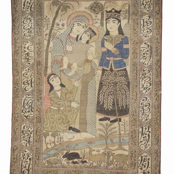 Figured Kashan Motashem carpet. Persia. Around 1900. Excellent state of conservation with full pile field and original perimeters. Very small faults in the two corners in the header.