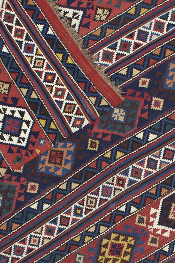 Shirwan kilim in wool with white parts in cotton. Caucasus. Second half of the 19th century. Perfect state of conservation.
