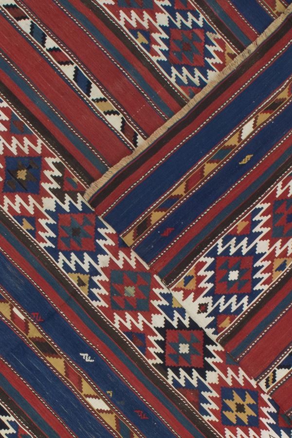 Shirwan kilim in wool with white parts in cotton. Caucasus. Second half of the 19th century. Perfect state of conservation.