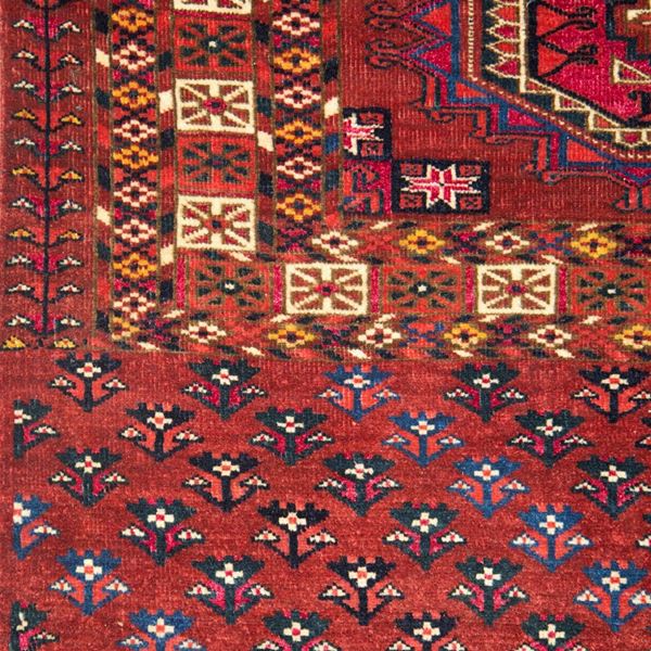 * Tekkè Chuval rug in wool and silk. Central Asia